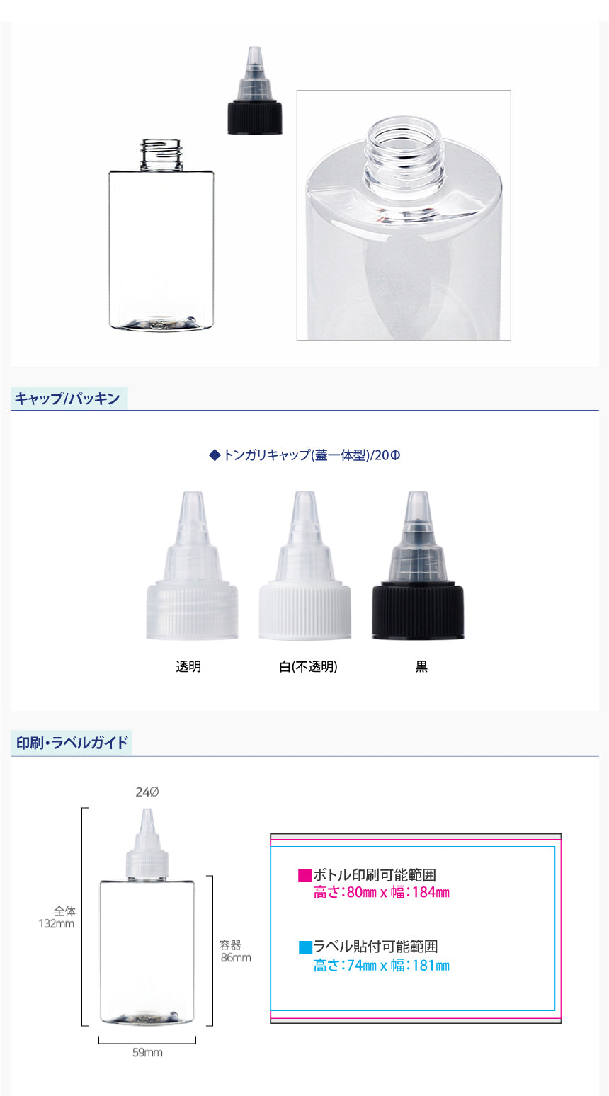 L) トンガリキャップ(蓋一体型-T) CS200ml_PET
