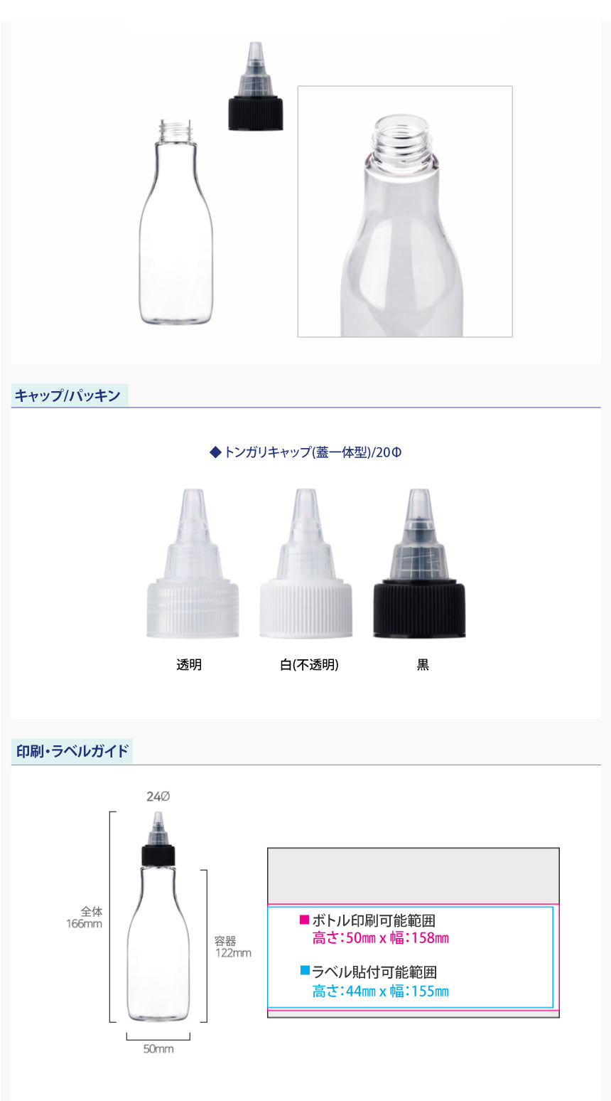 L) トンガリキャップ(蓋一体型-T) CRS150ml_PET