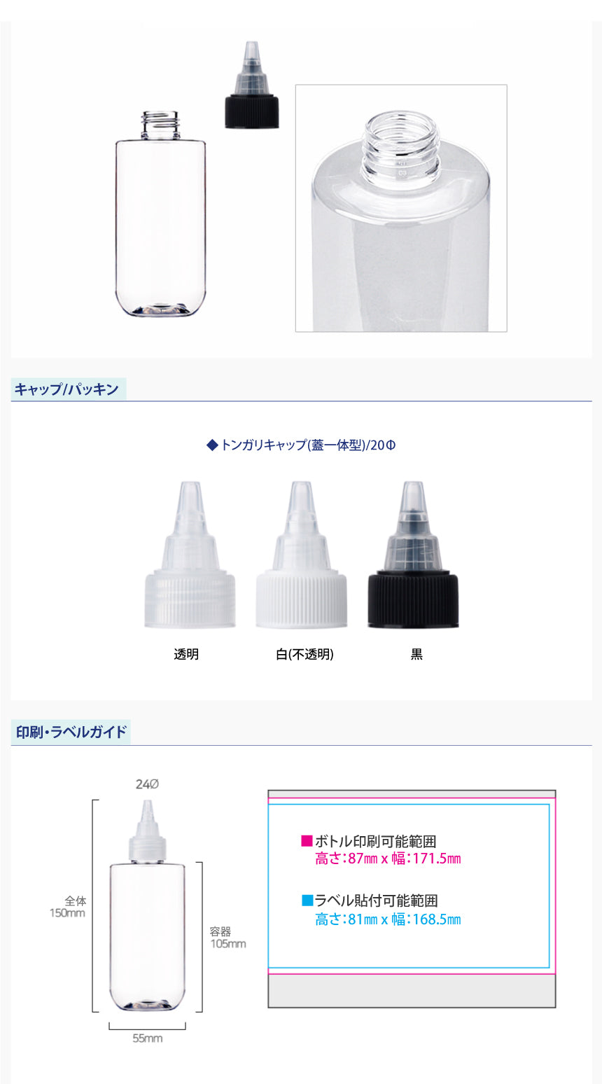 L) トンガリキャップ(蓋一体型-T) CU200ml_PET