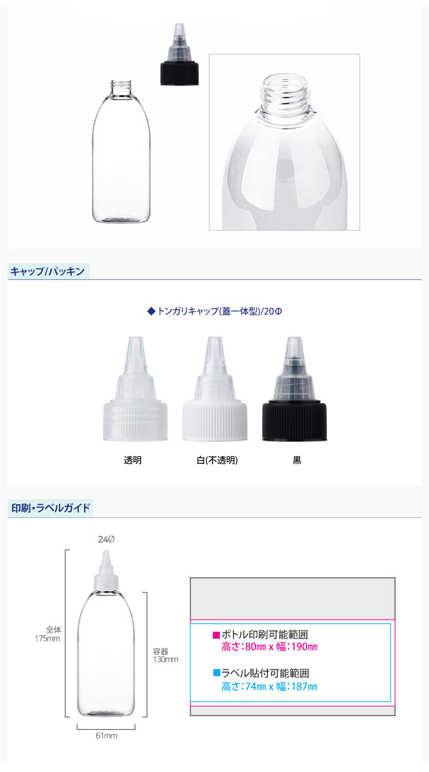 L) トンガリキャップ(蓋一体型-T) CD300ml_PET