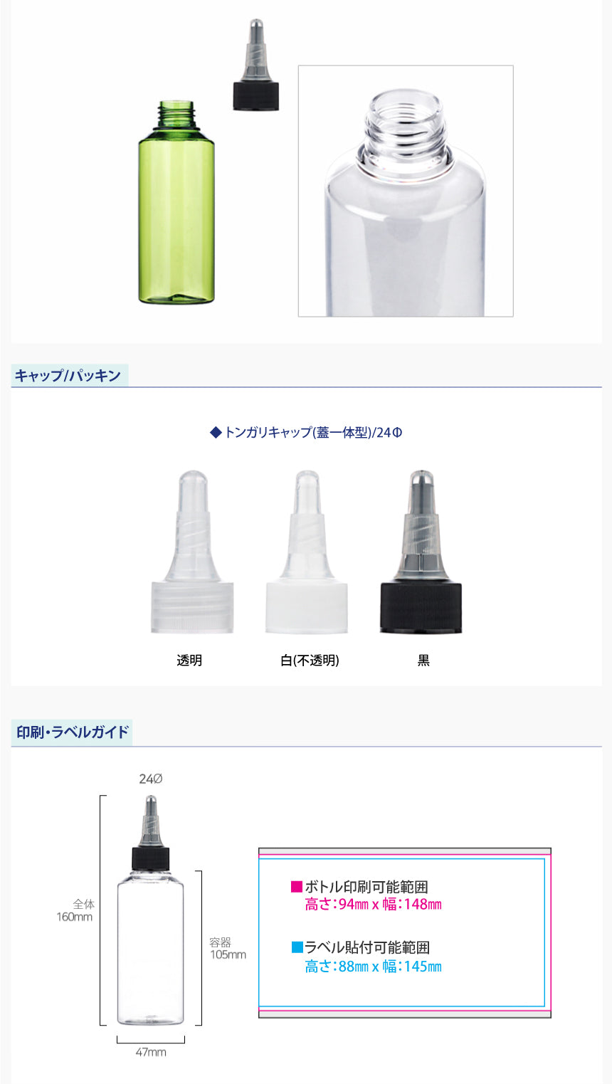 L) トンガリキャップ(蓋一体型) CA150ml_PET