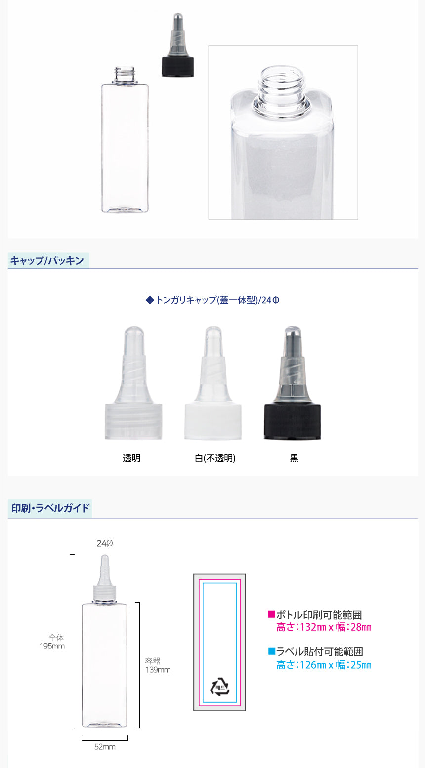 L) トンガリキャップ(蓋一体型・角型) S300ml_PET