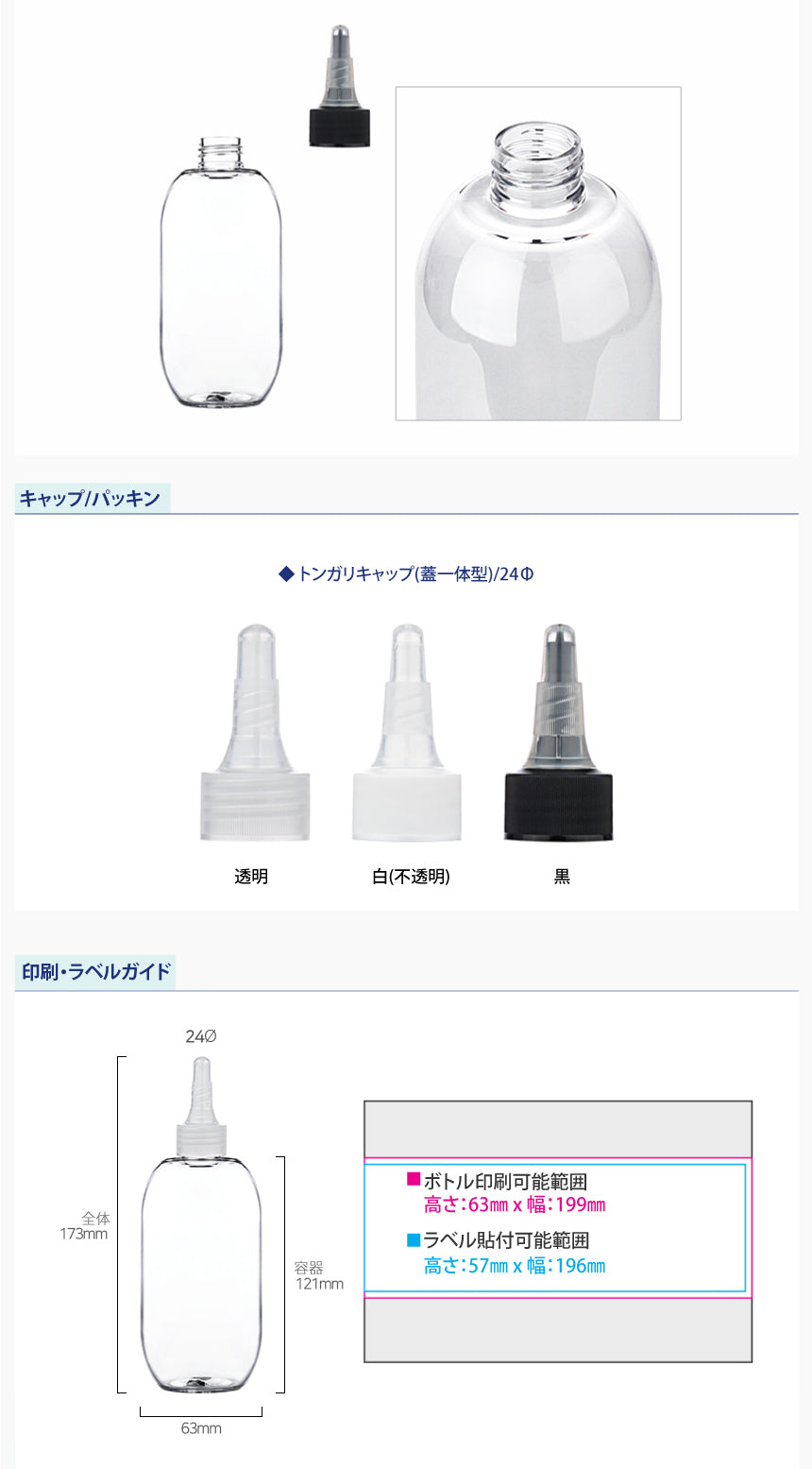 容量:300ml / 口径:24φ / 直径: 63mm / 高さ: 173mm