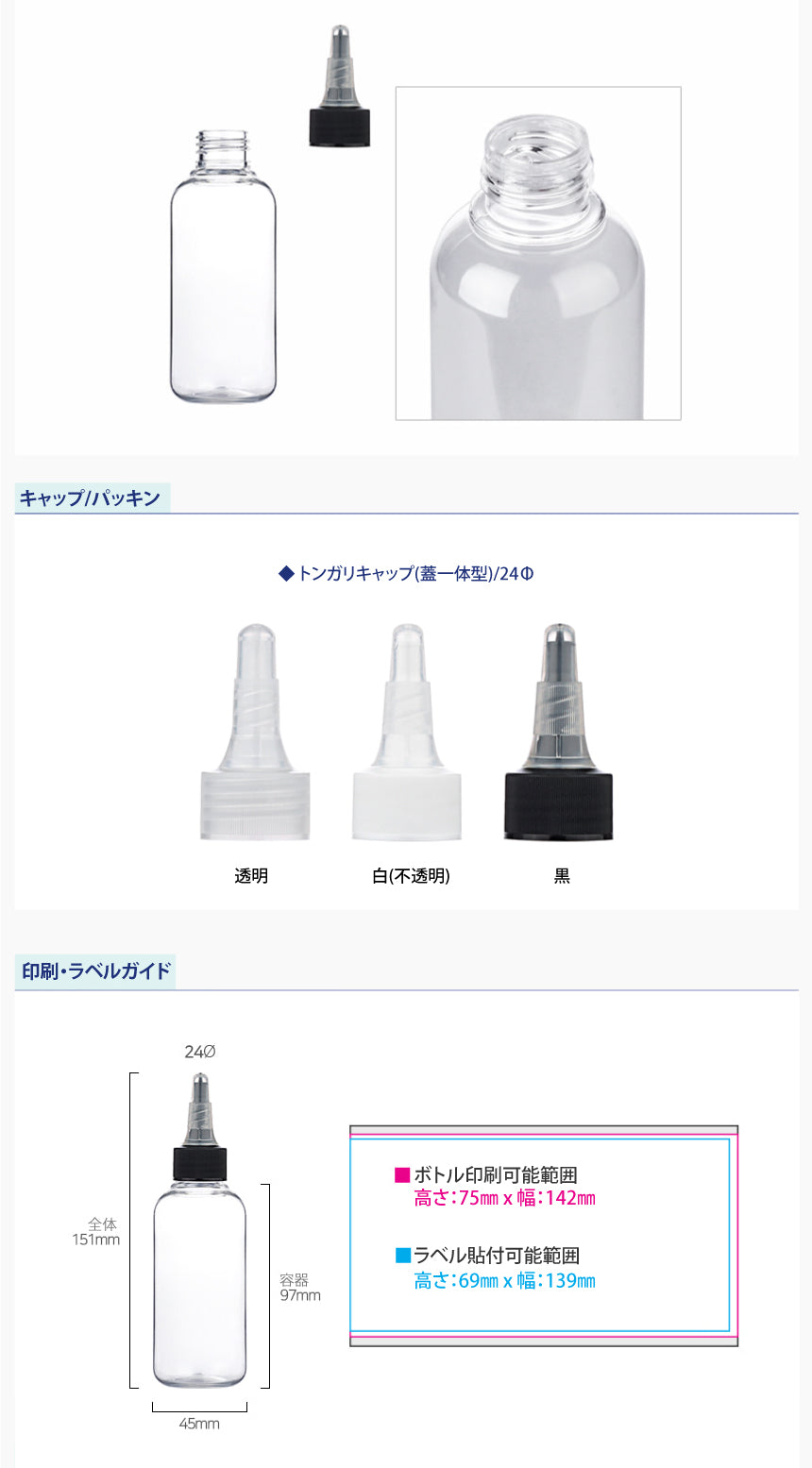 L) トンガリキャップ(蓋一体型) CR125ml_PET