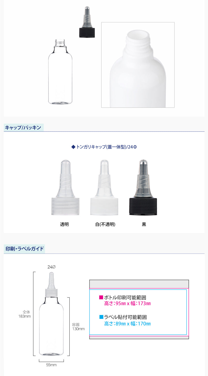 容量:250ml / 口径:24φ / 直径: 55mm / 高さ: 183mm