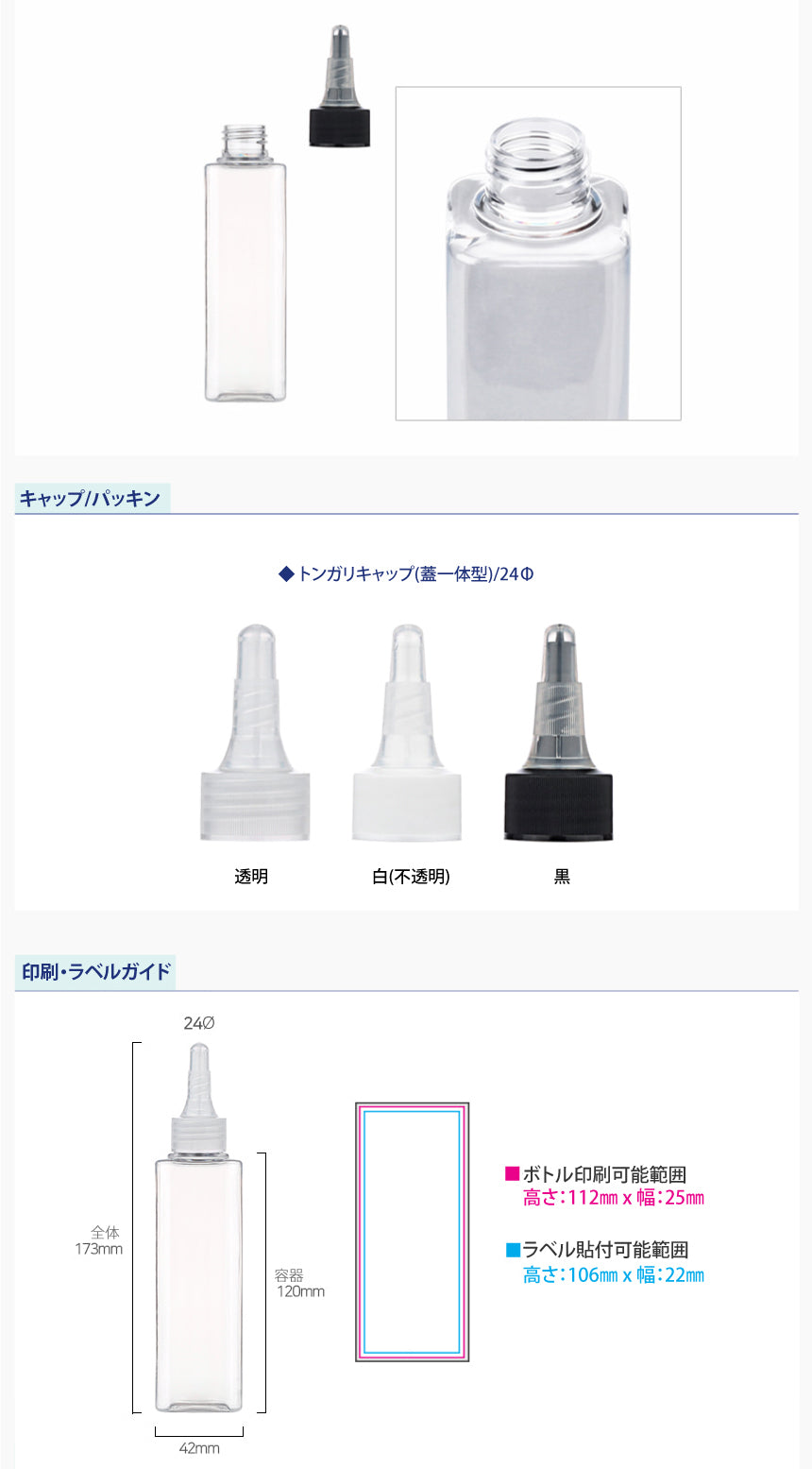 L) トンガリキャップ(蓋一体型・角型) S150ml_PET