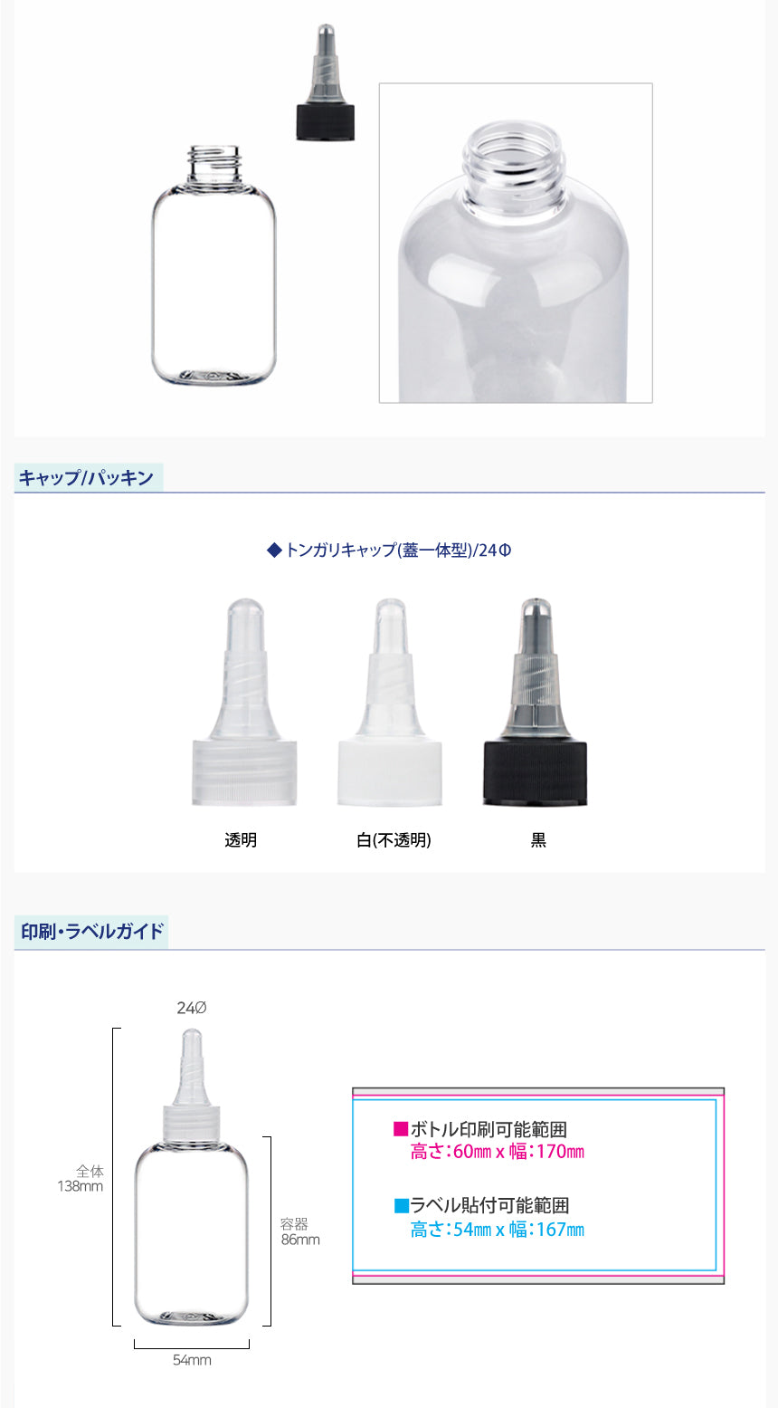 L) トンガリキャップ(蓋一体型) CO150ml_PET
