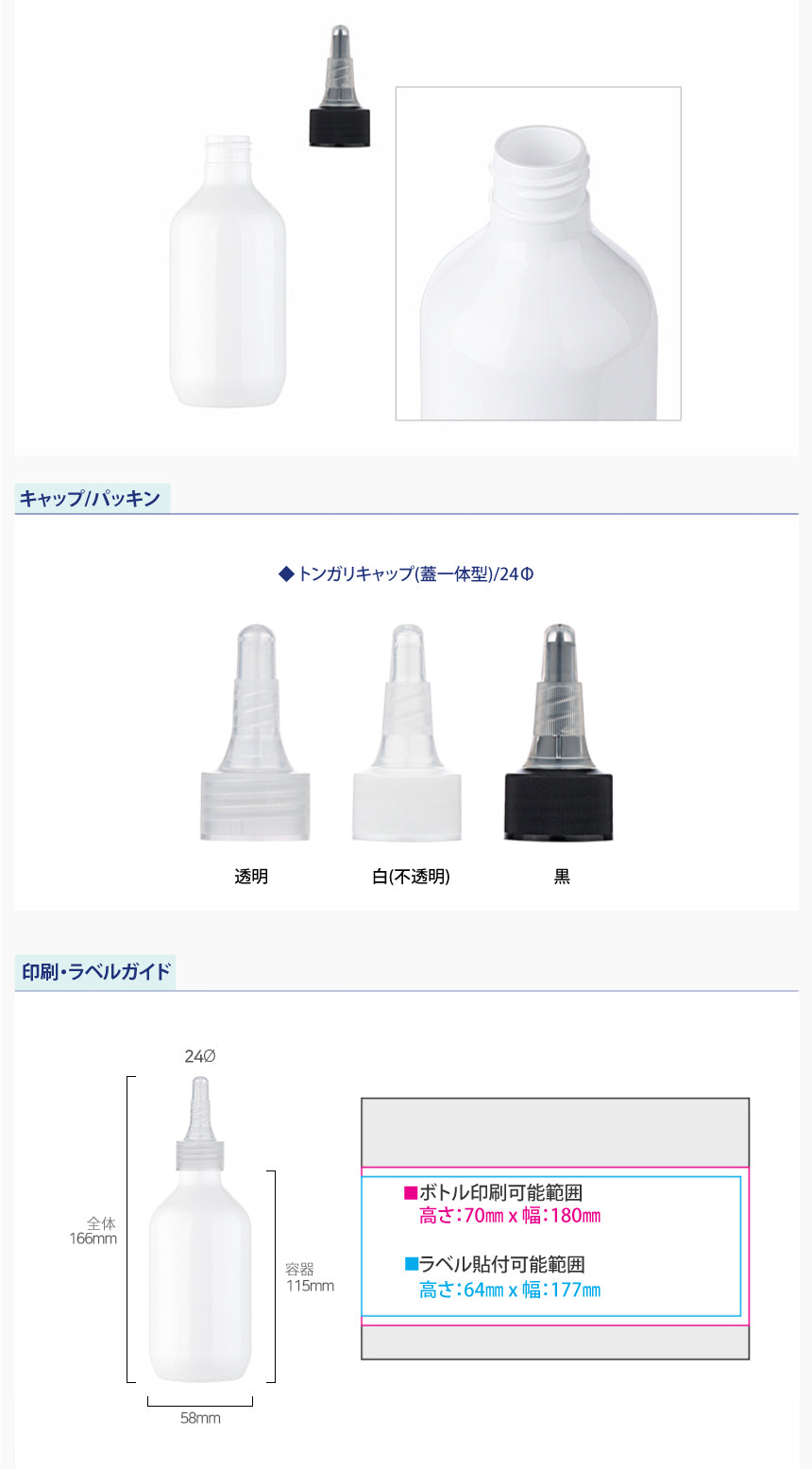 L) トンガリキャップ(蓋一体型) CAS200ml_PET