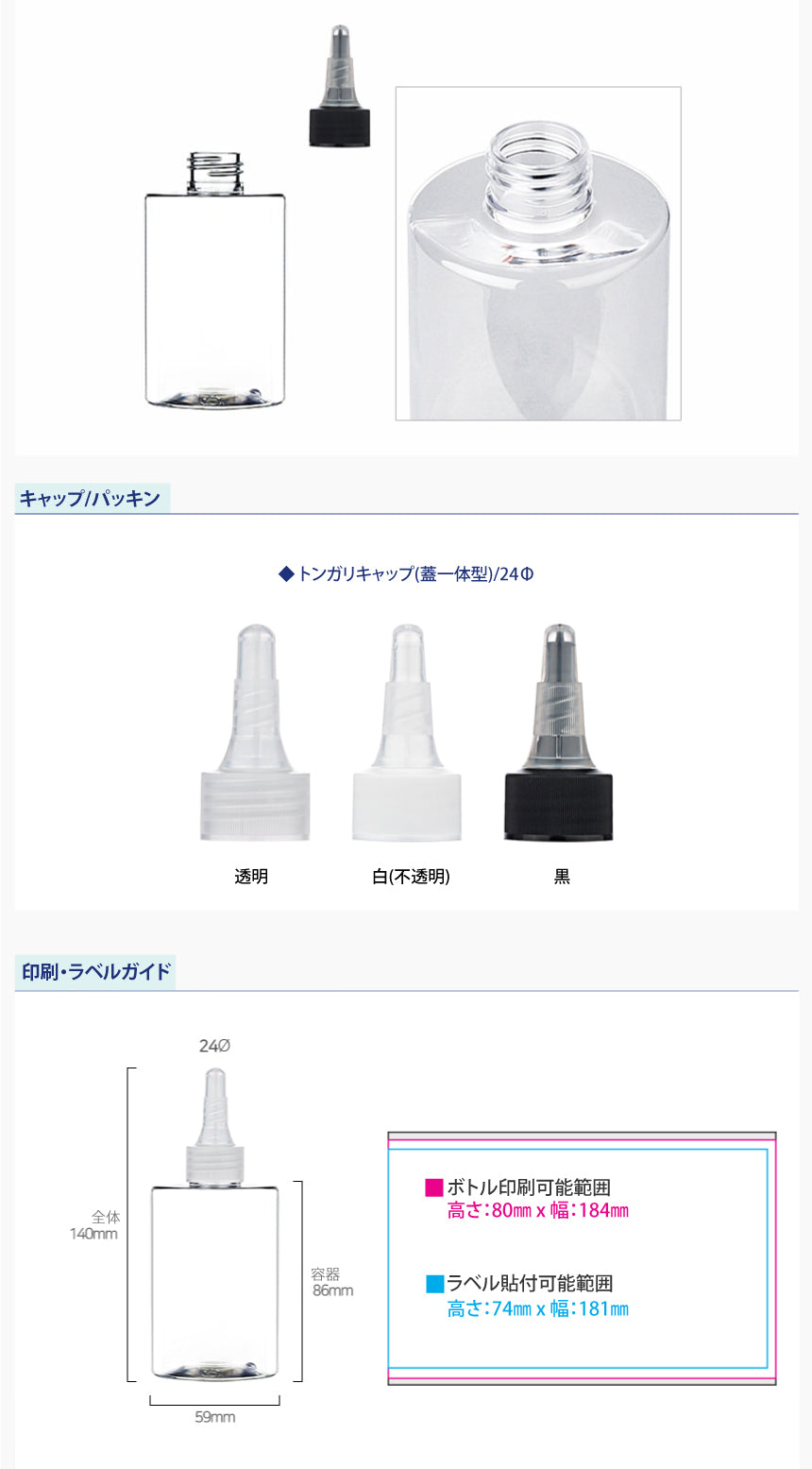 L) トンガリキャップ(蓋一体型) CS200ml_PET