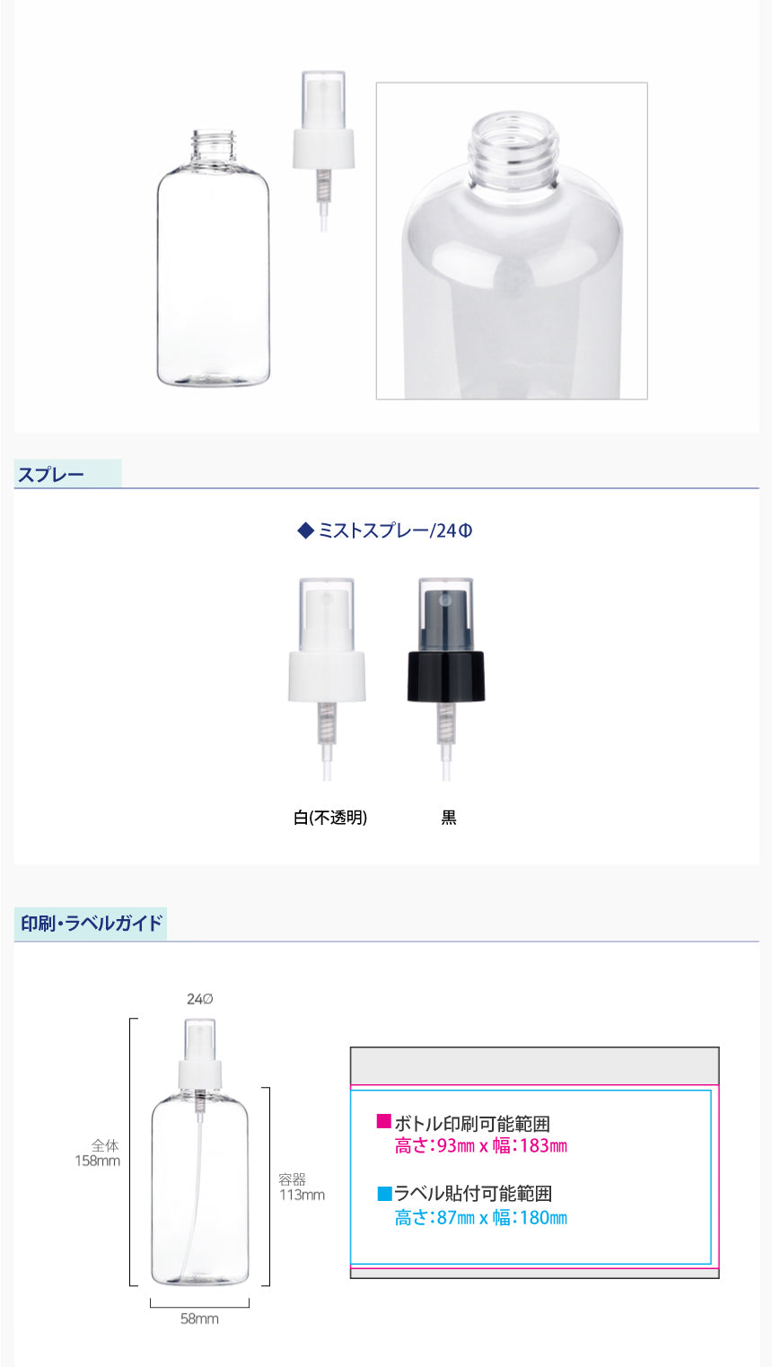 容量:250ml / 口径 : 24φ / 高さ:158mm / 直径 : 58mm