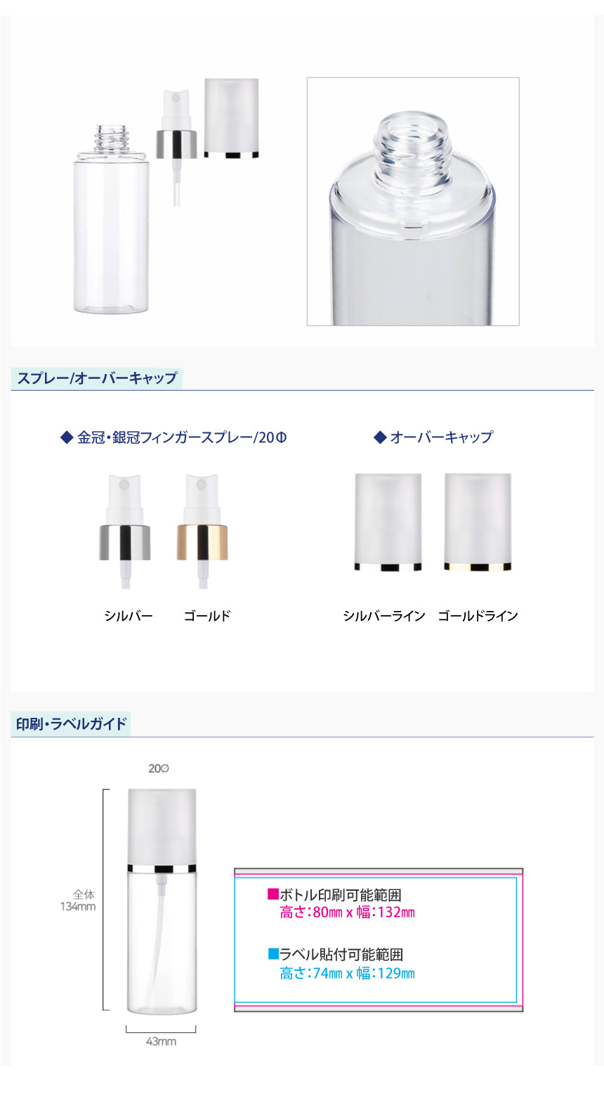 容量:100ml / 口径 : 20φ / 高さ:134mm / 直径 : 43mm