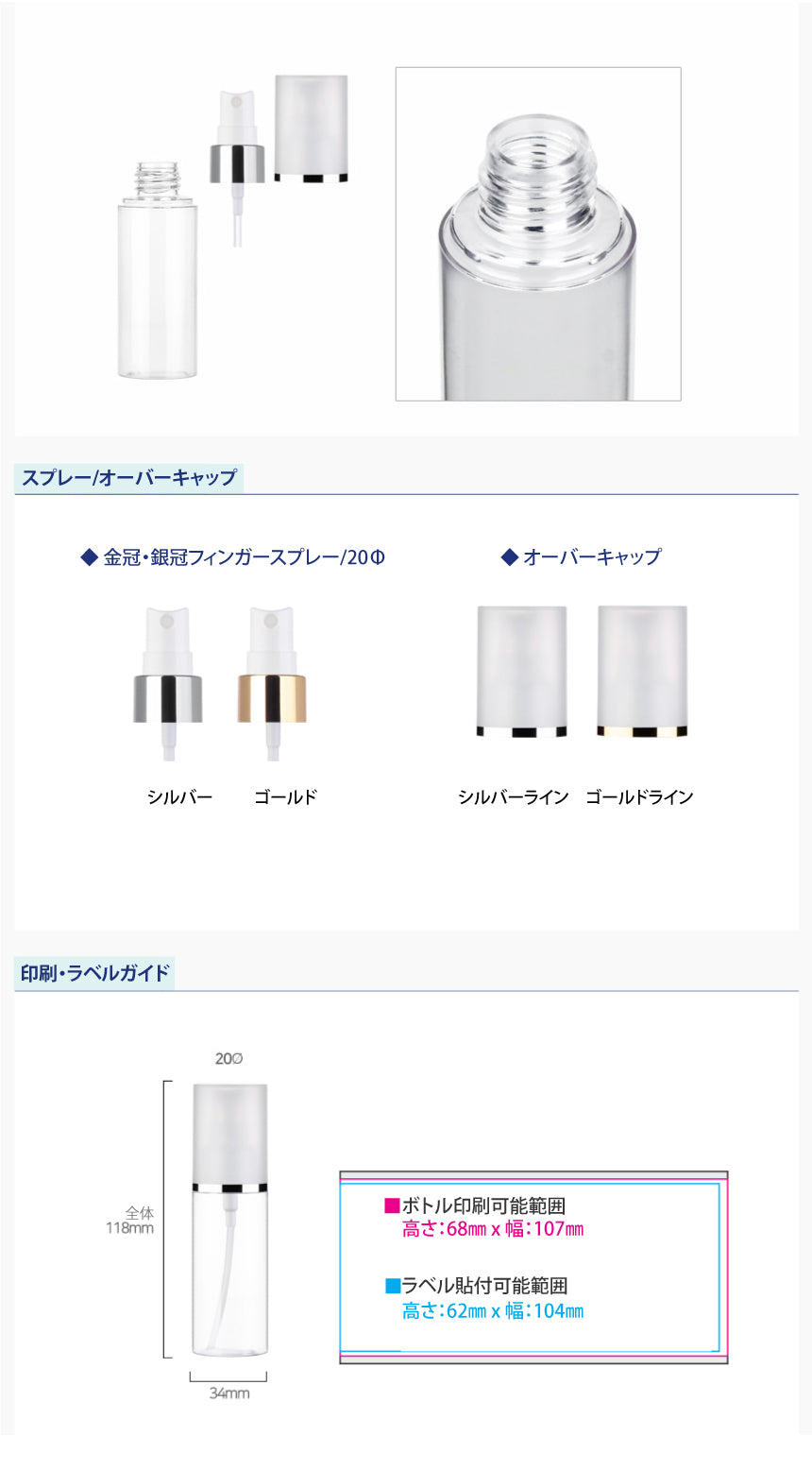 容量:50ml / 口径 : 20φ / 高さ:118mm / 直径 : 34m
