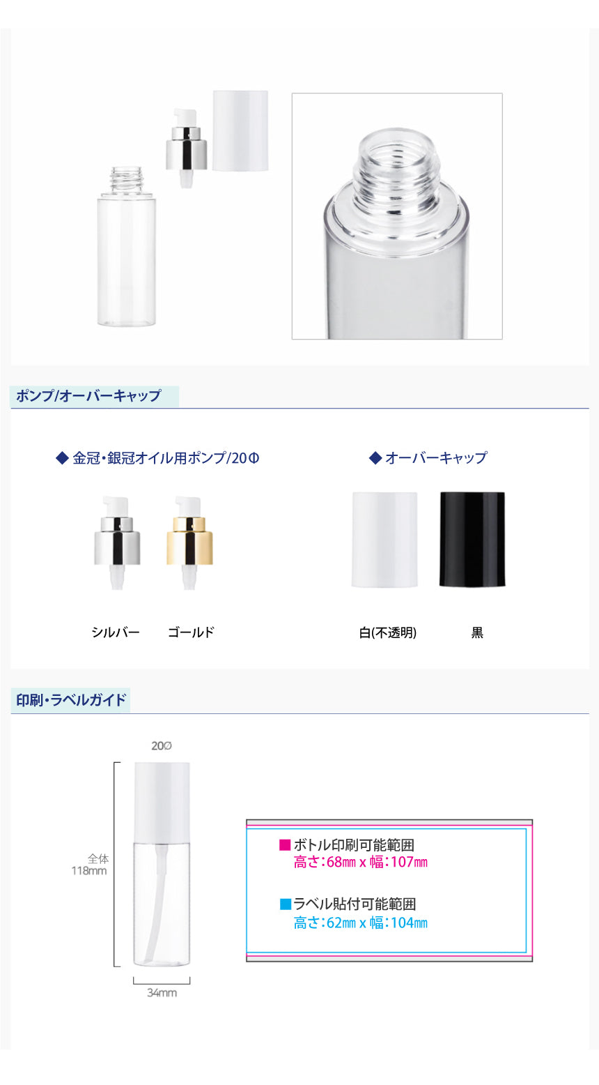 容量:50ml / 口径 : 20φ / 高さ:118mm / 直径 : 34mm