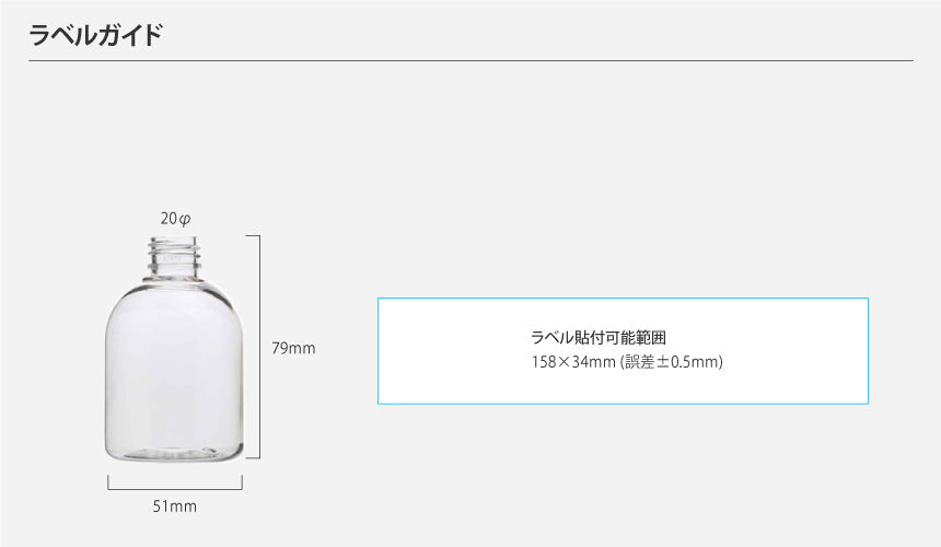 容量:100ml / 口径 : 20φ / 高さ:110mm / 直径 : 52mm