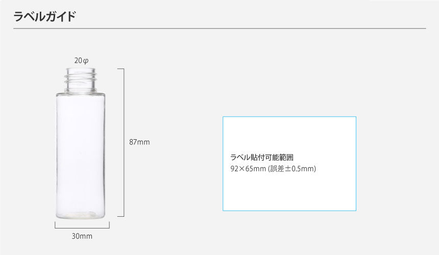 容量:40ml / 口径 : 20φ / 高さ:90.5mm / 直径 : 30mm