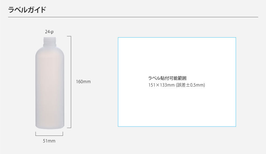 容量:250ml / 口径 : 24φ / 高さ:180.3mm / 直径 : 51mm