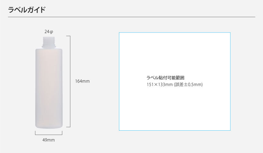 容量:250ml / 口径 : 24φ / 高さ:184.3mm / 直径 : 49mm