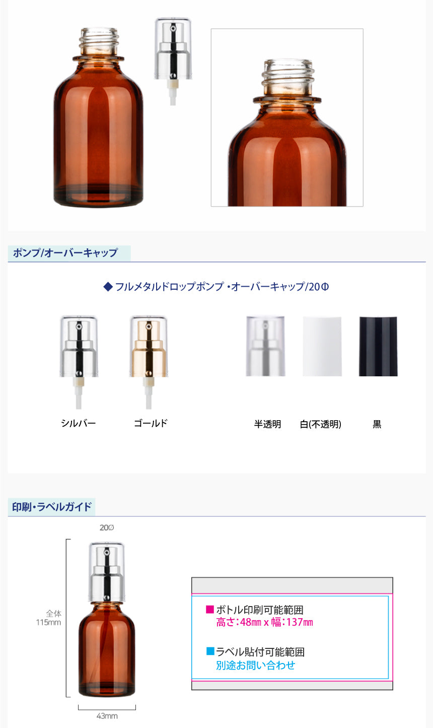 容量:50ml / 口径 : 20φ / 高さ:116mm / 直径 : 43mm