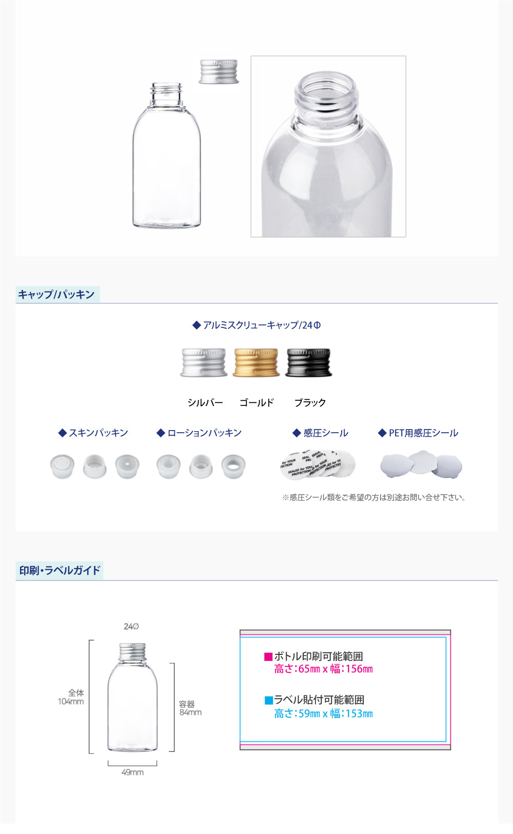 容量:120ml / 口径 : 24φ / 高さ:104mm / 直径 : 49mm