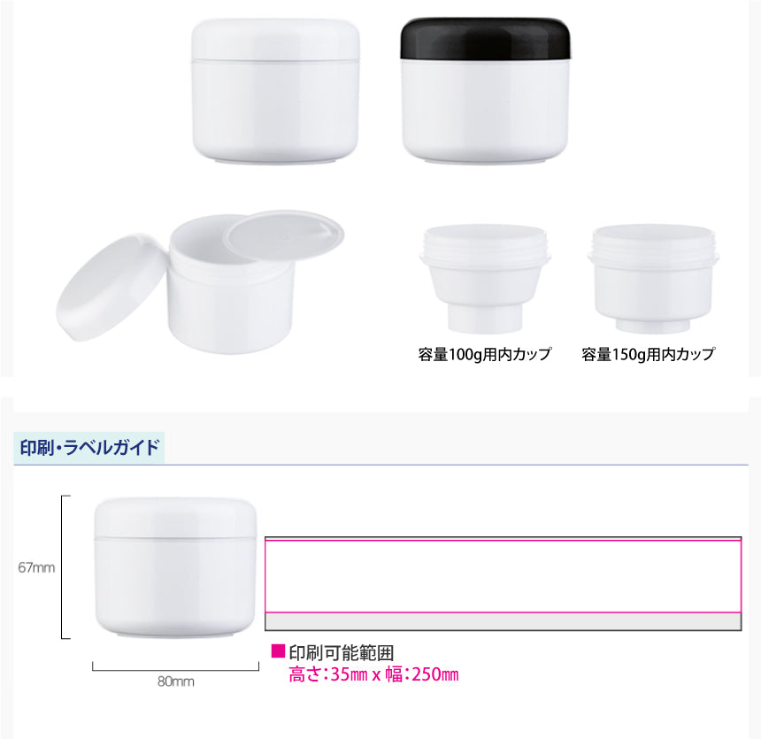 容量:100g, 150g / 高さ:67mm / 直径 : 80mm