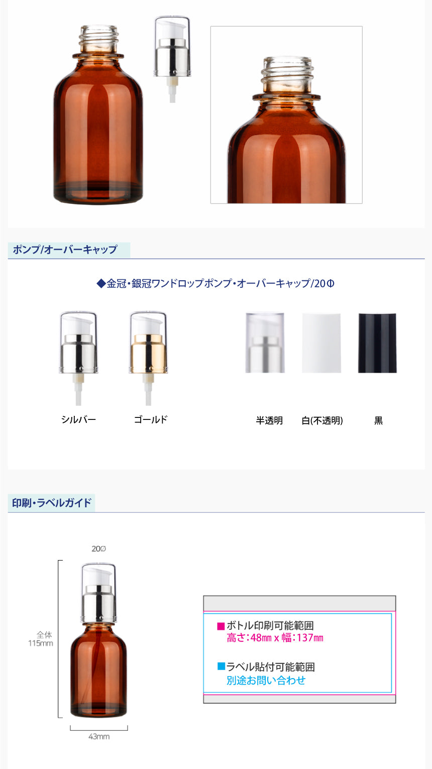 L) 金冠・銀冠ガラスドロップポンプ(茶色) CW50ml