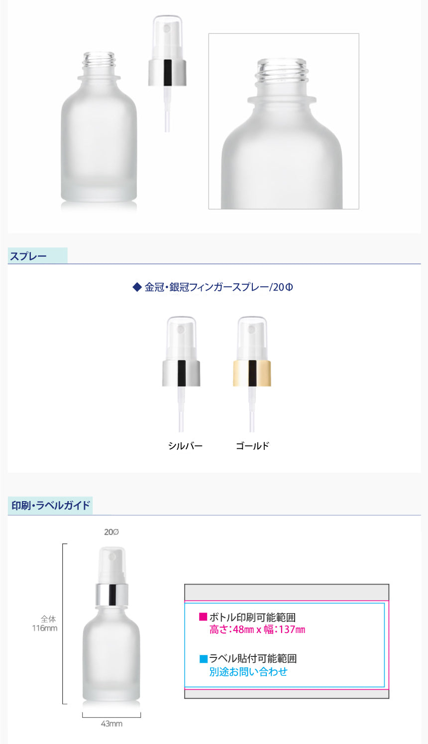 容量:50ml / 口径 : 20φ / 高さ:131mm / 直径 : 37mm