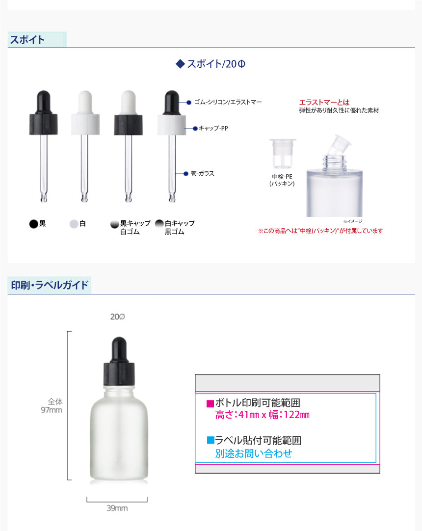 容量:30ml / 口径 : 20φ / 高さ:97mm / 直径 : 39mm