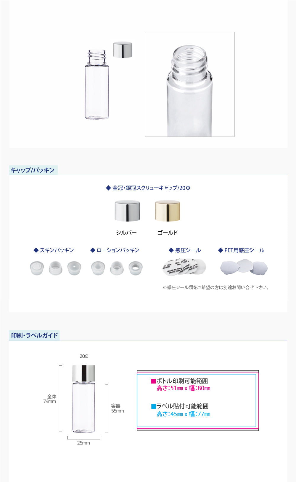 容量:20ml / 口径 : 20φ / 高さ:74mm / 直径 : 25mm