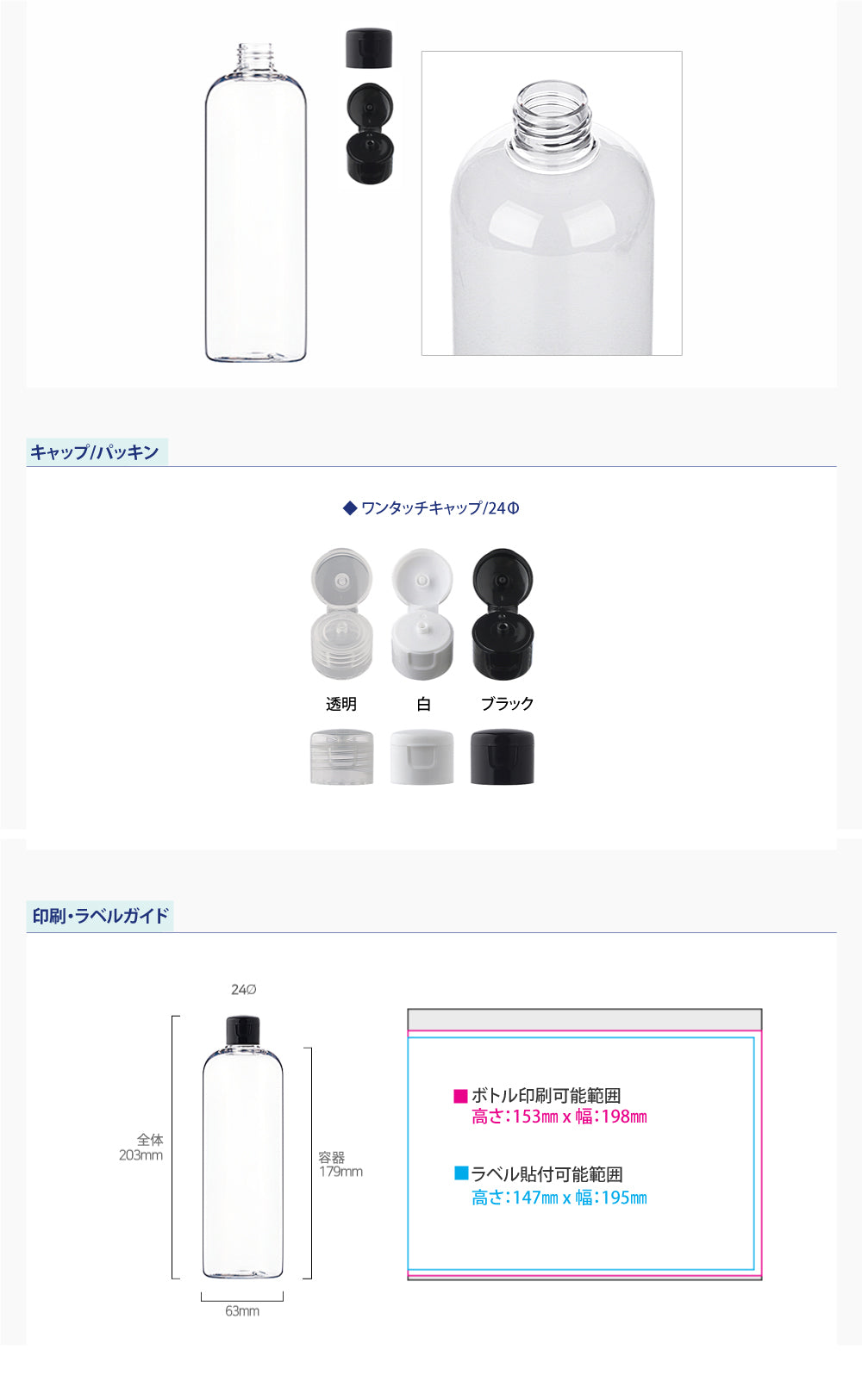 容量:500ml / 口径 : 24φ / 高さ:203mm / 直径 : 63mm