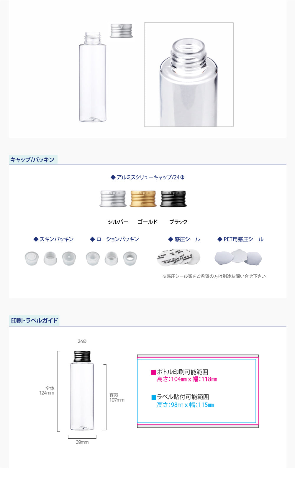 容量:100ml / 口径 : 24φ / 高さ:124mm / 直径 : 39mm