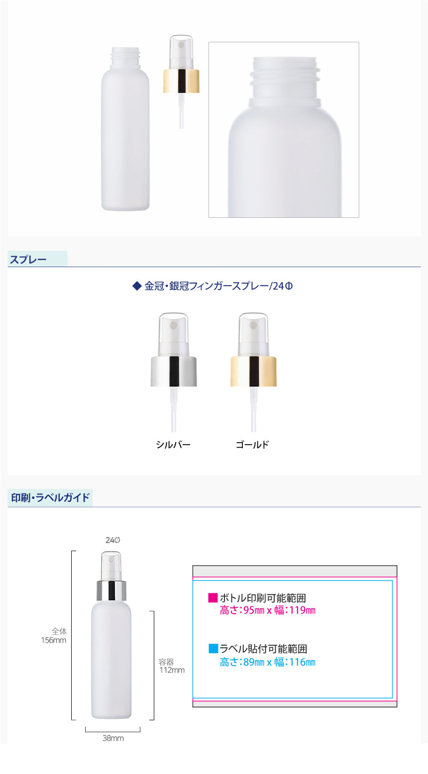 容量:100ml / 口径 : 24φ / 高さ:156mm / 直径 : 38mm