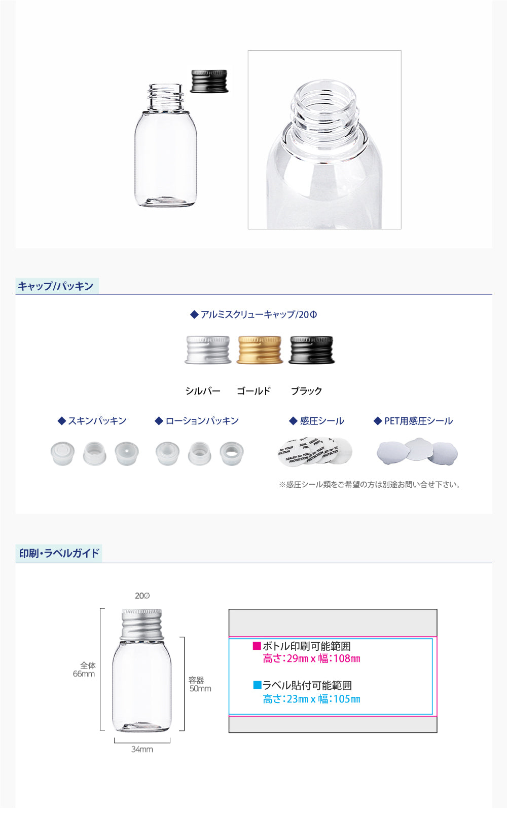 容量:30ml / 口径 : 20φ / 高さ:66mm / 直径 : 34mm