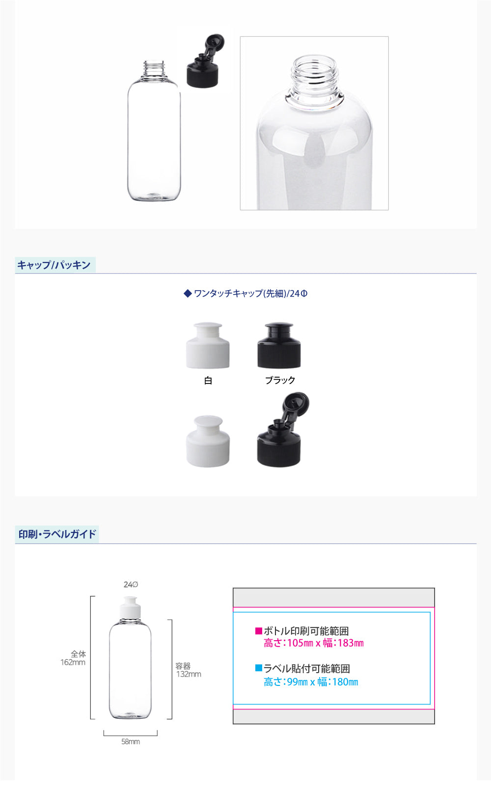 容量:300ml / 口径 : 24φ / 高さ:162mm / 直径 : 58mm