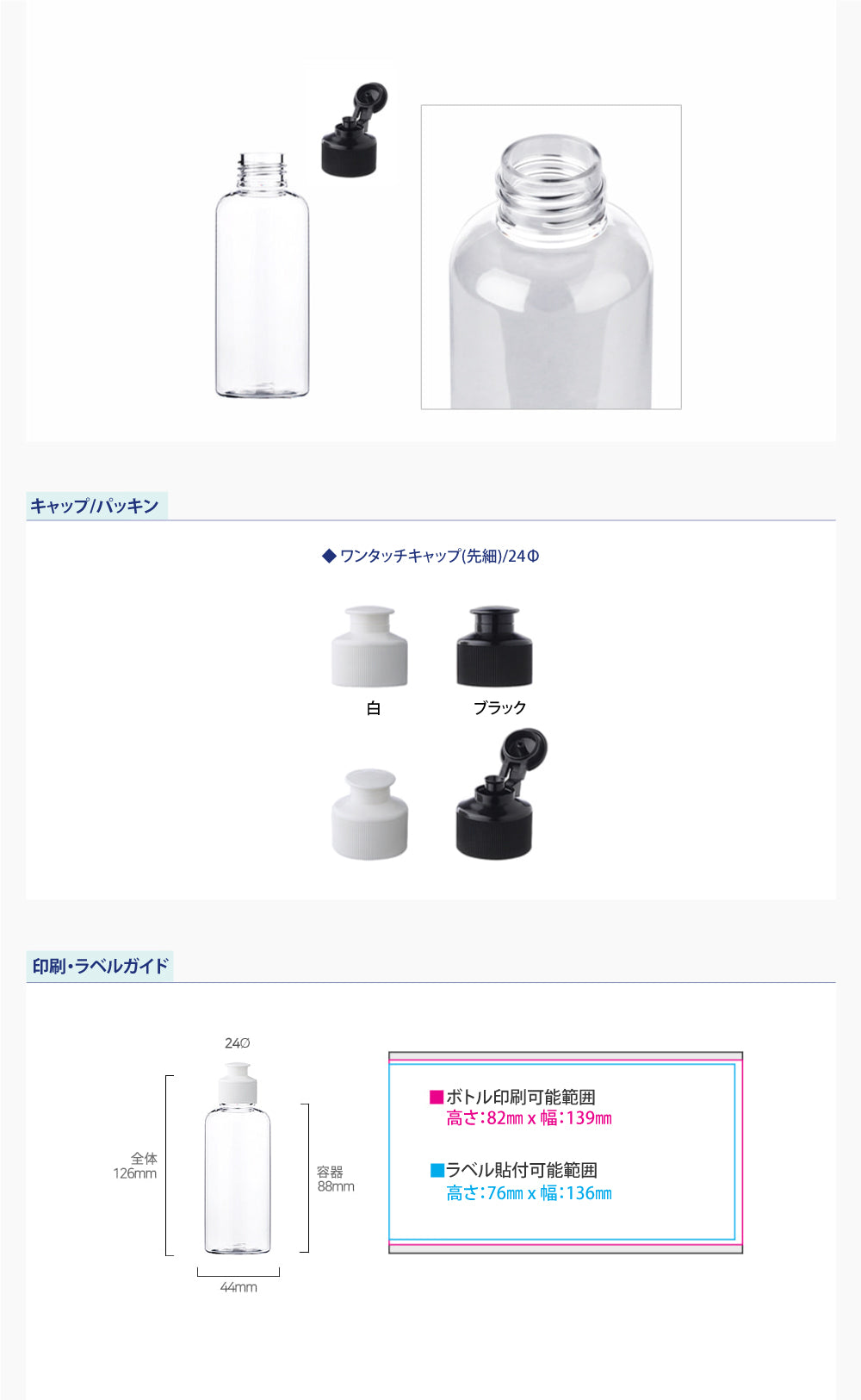 L) ワンタッチキャップボトル(先細) CR120ml_PET