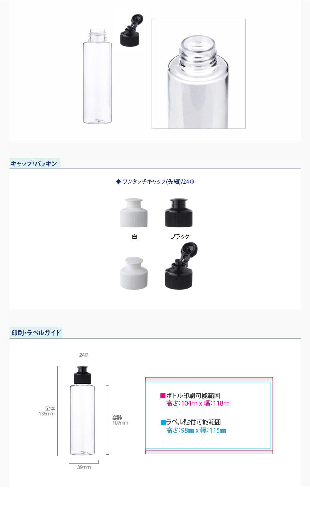 L) ワンタッチキャップボトル(先細) C100ml_PET