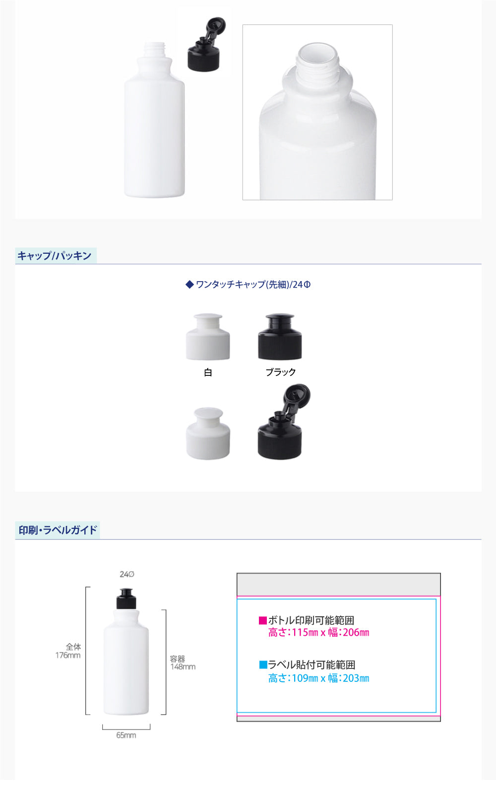 容量:400ml / 口径 : 24φ / 高さ:176mm / 直径 : 65mm