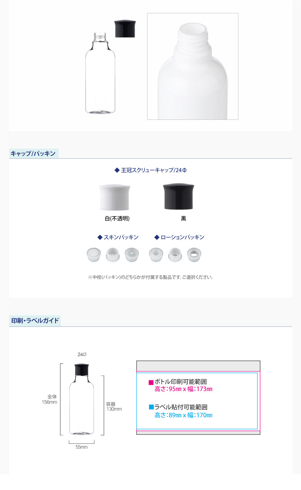 容量:250ml / 口径 : 24φ / 高さ:156mm / 直径 : 55mm