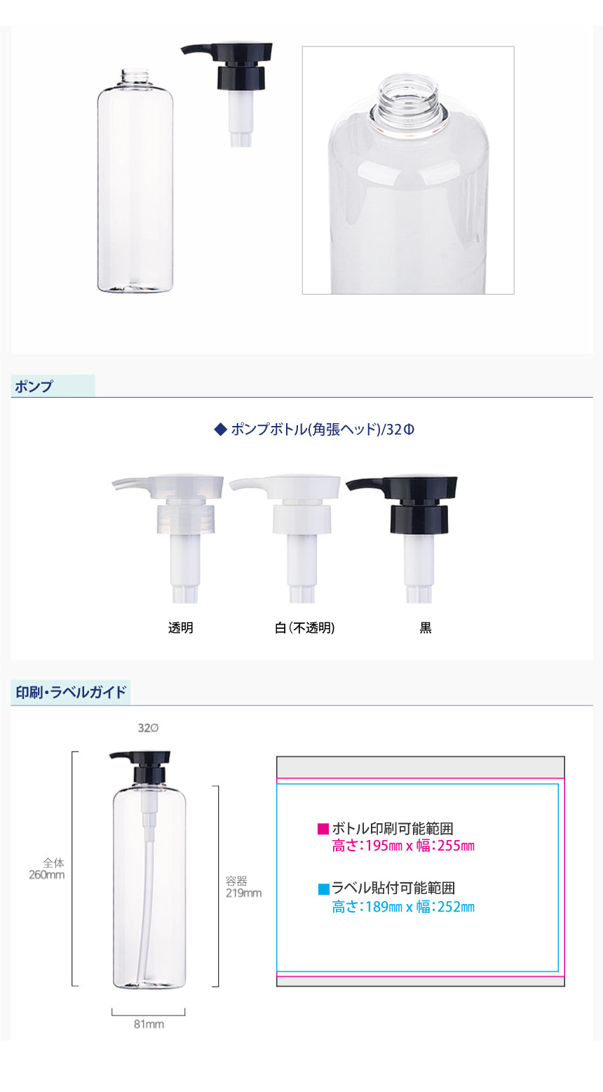 L) ポンプボトル(角張ヘッド) CR1000ml_PET
