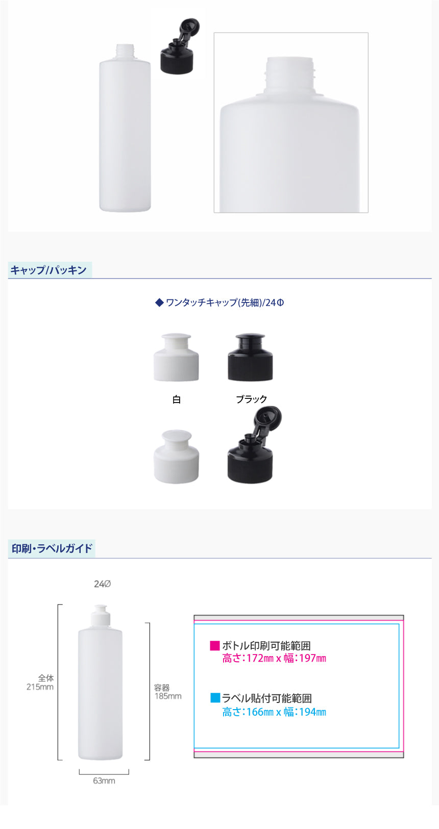 容量:500ml / 口径 : 24φ / 高さ:215mm / 直径 : 63mm
