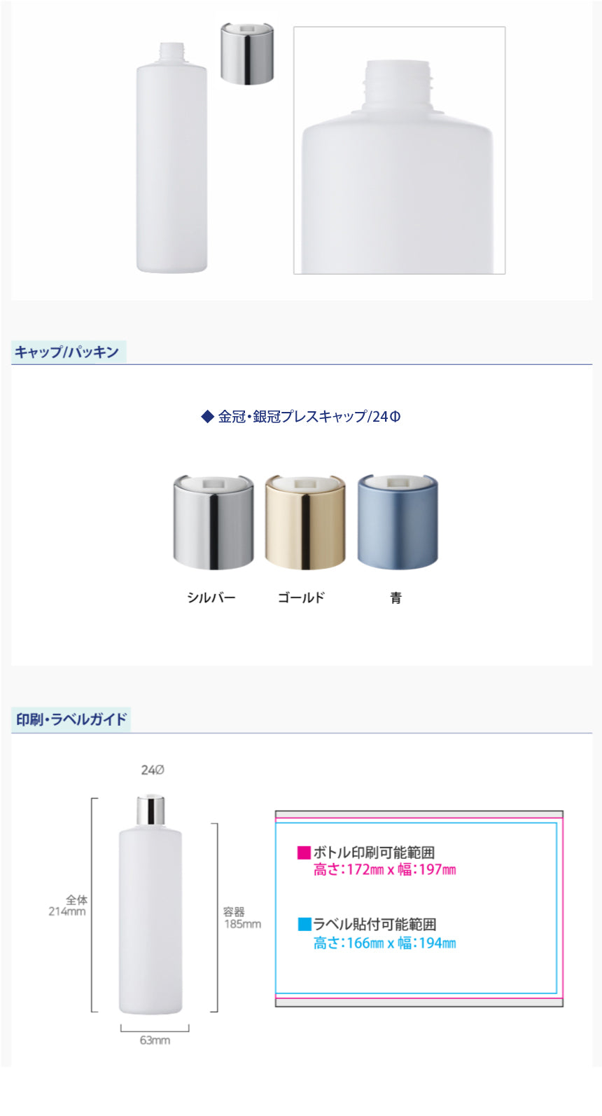 容量:500ml / 口径 : 24φ / 高さ:214mm / 直径 : 63mm