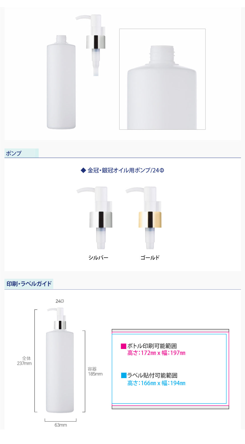 容量:500ml / 口径 : 24φ / 高さ:237mm / 直径 : 63mm