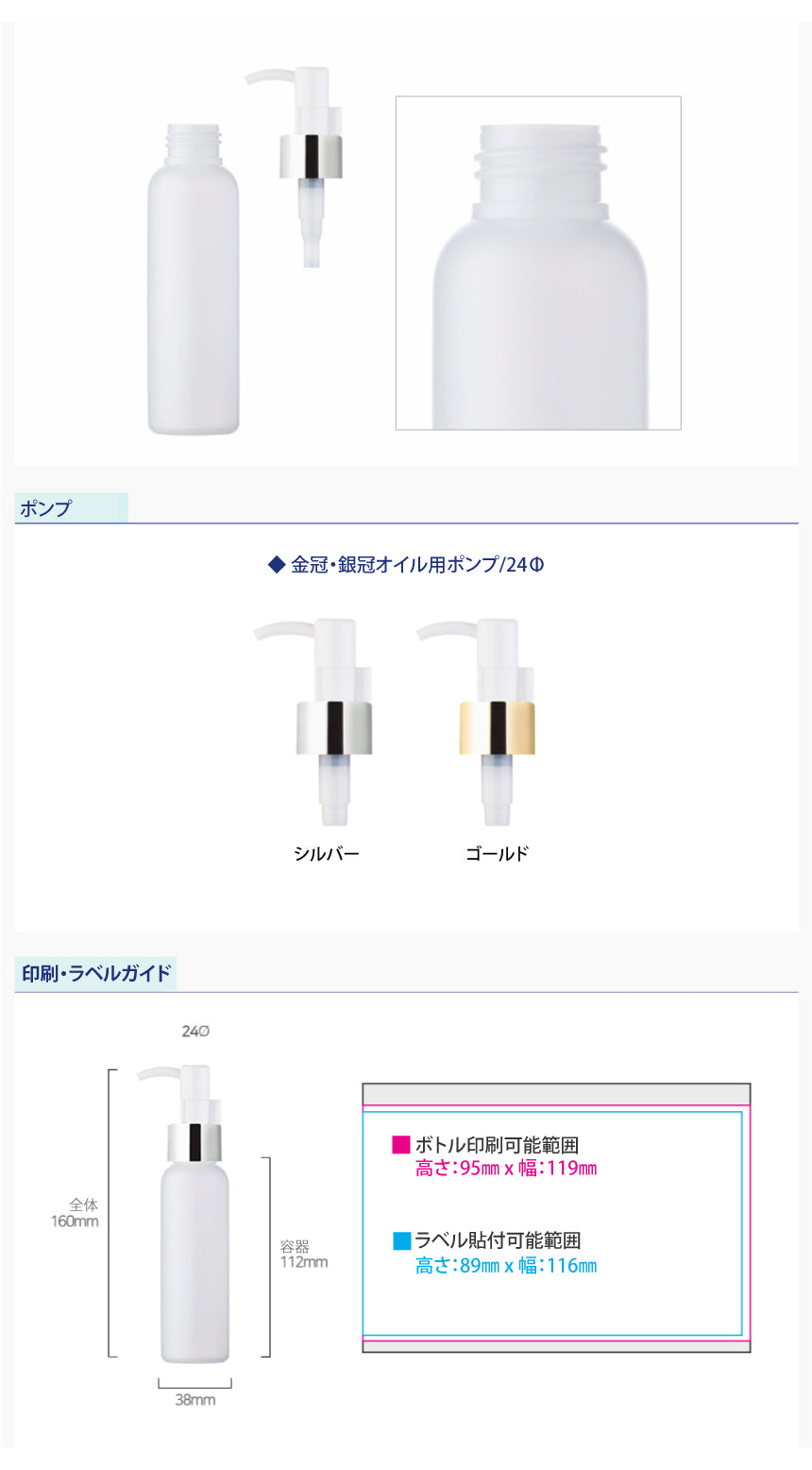 容量:100ml / 口径 : 24φ / 高さ:160mm / 直径 : 38mm