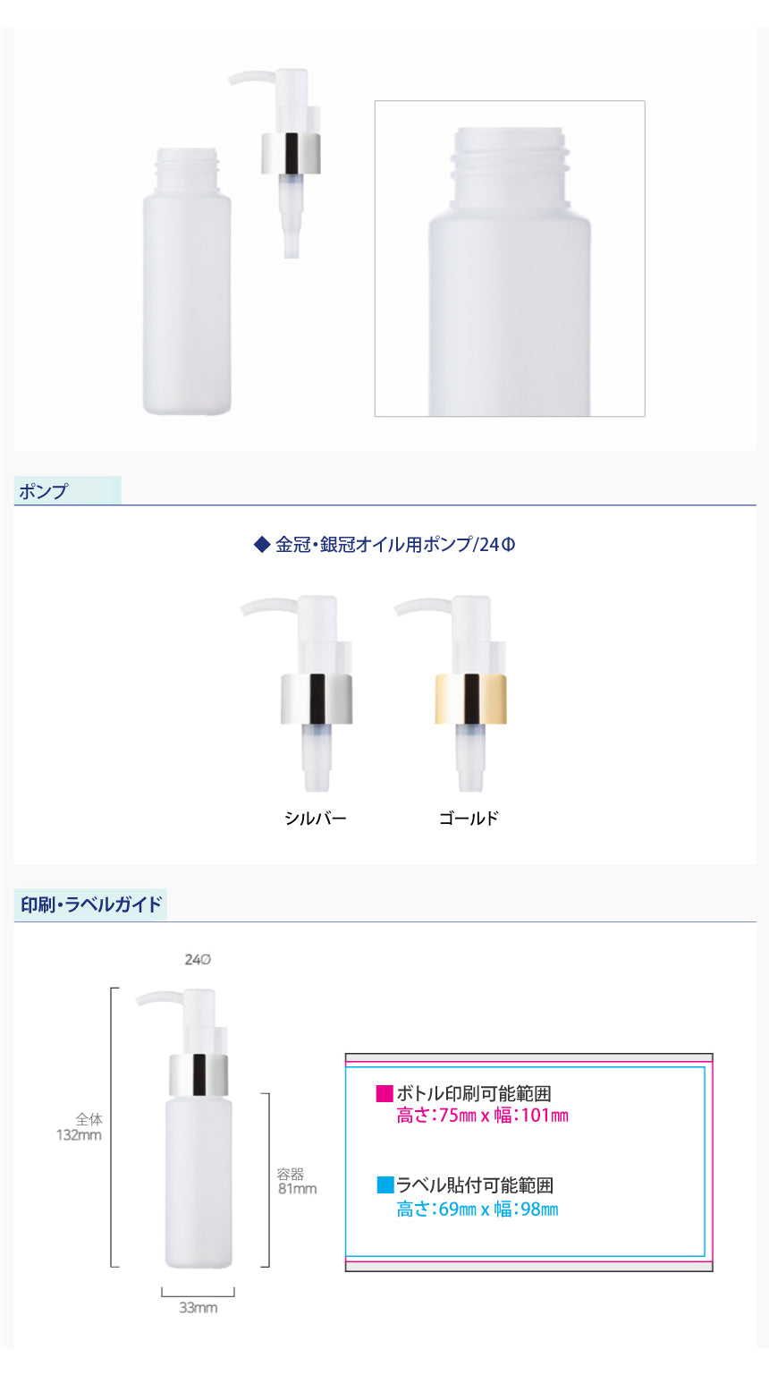 容量:50ml / 口径 : 24φ / 高さ:131.5mm / 直径 : 32mm