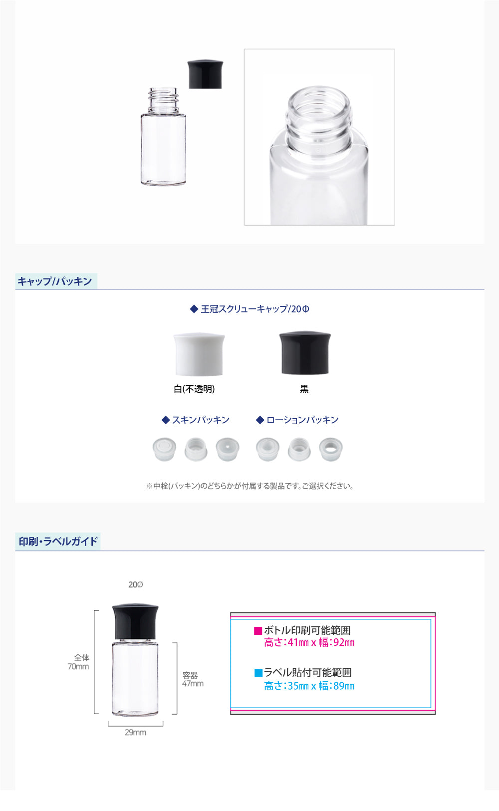 容量:20ml / 口径 : 20φ / 高さ:70mm / 直径 : 29mm