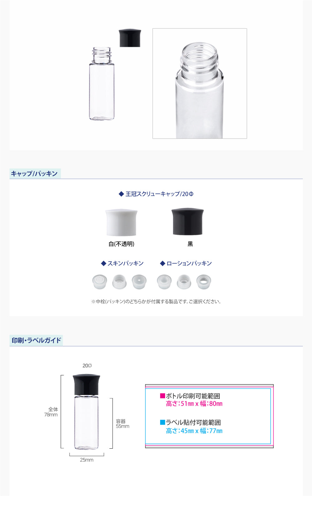 容量:20ml / 口径 : 20φ / 高さ:78mm / 直径 : 25mm