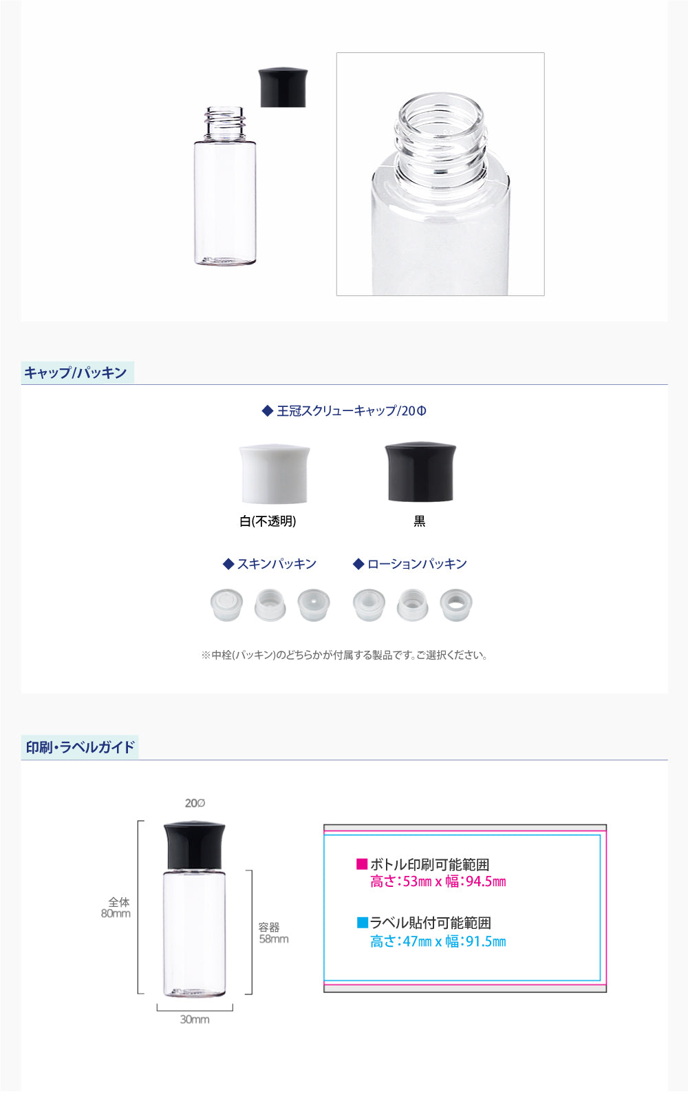 容量:30ml / 口径 : 20φ / 高さ:80mm / 直径 : 30mm