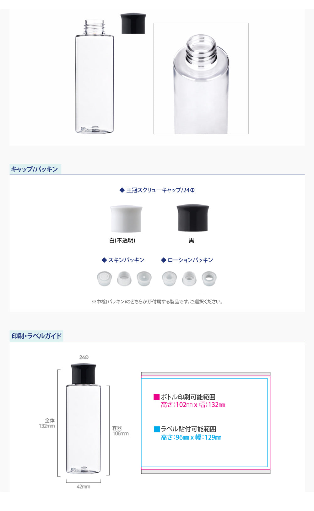 容量:120ml / 口径 : 24φ / 高さ:132mm / 直径 : 42mm