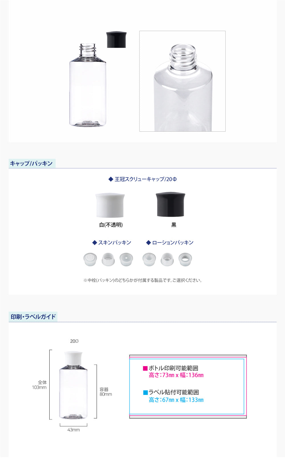 容量:100ml / 口径 : 20φ / 高さ:103mm / 直径 : 43mm