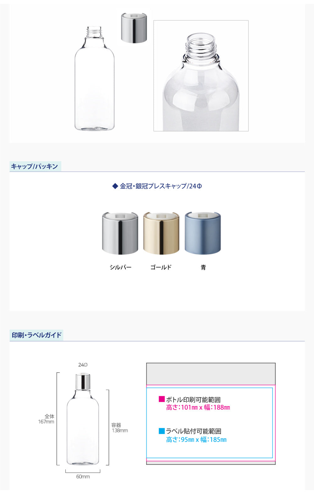 L) 金冠・銀冠プレスキャップボトル CW300ml_PET
