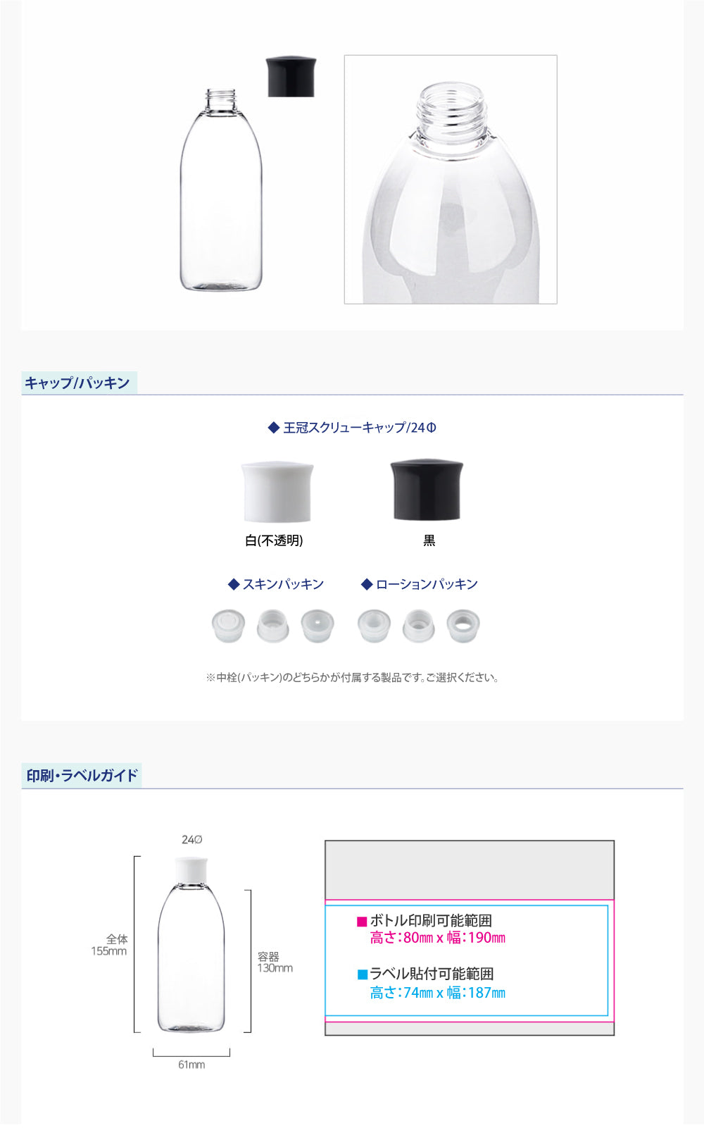 容量:300ml / 口径 : 24φ / 高さ:155mm / 直径 : 61mm